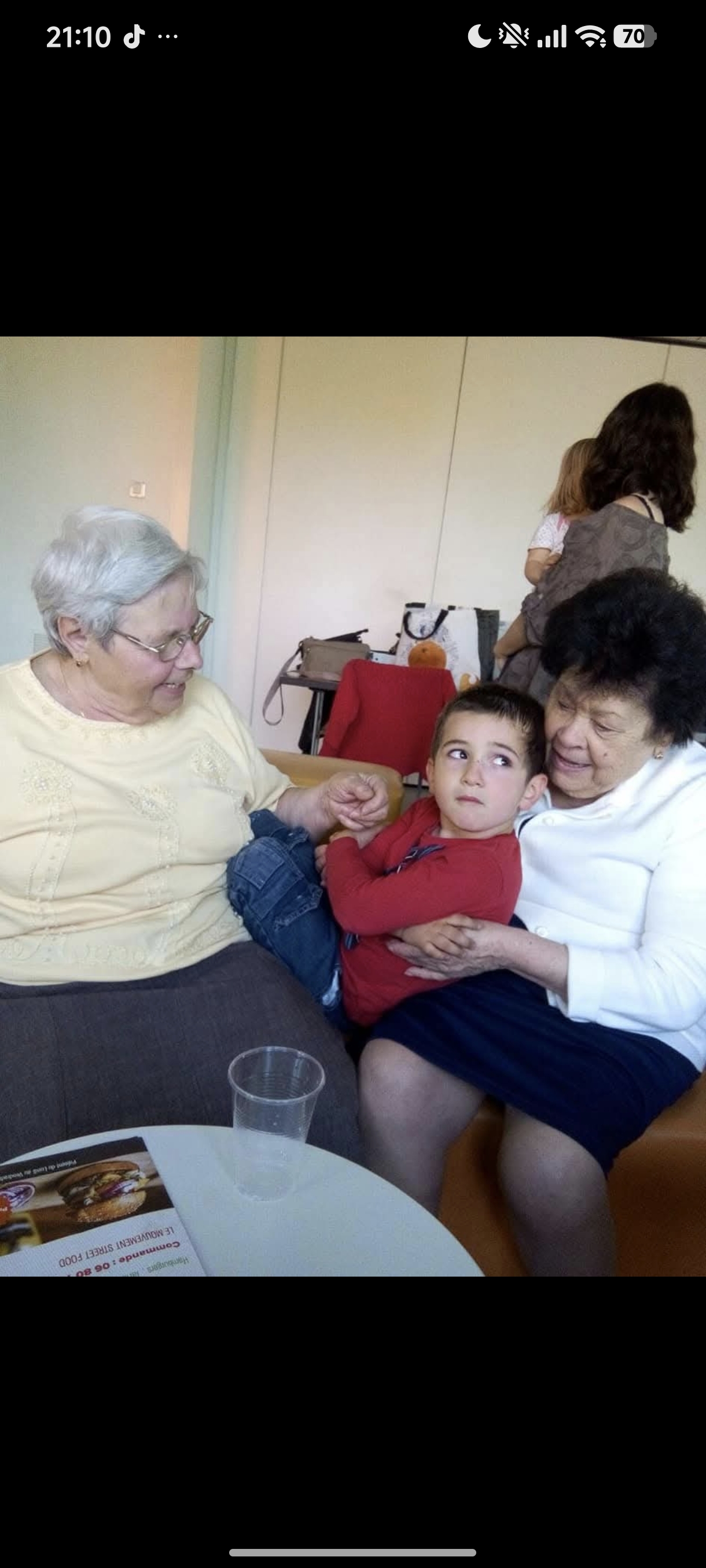 " Coucou mémé, c est ton ainée 🤍🫶🏼 je voulais te remercier pour ces 45 belles années à tes côtés, pour ces fous rires que nous avons eu, pour les délicieux plats que tu nous concoctais, pour ton franc parlé, ta force, ton amour pour ta famille entière, tes valeurs, ton courage. Tu étais une femme exceptionnelle et tu as été un merveilleux modèle et un soutien pour nous tous. Tu vas nous manquer mais nous savons que désormais tu es en paix et sereine. J espère qu Élodie me fera de bonnes bugnes car sans les tiennes je vais dépérir. Ti amo Nonna. Gros mimis volants. Embrasse mémé Philo et berce Soann pour moi 🤍🙏🏼 vola Gigino y vola Gigetto "